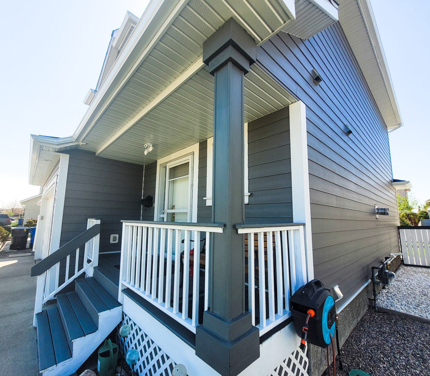 A complete exterior upgrade – including: siding, soffit/fascia, eavestrough – instantly maximized this home’s curb appeal.